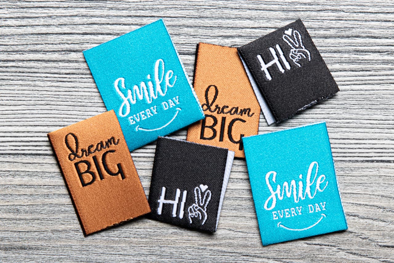 De drie motieven vangen verschillende stemmingen. "HI" voelt open en uitnodigend, "Dream Big" herinnert je aan je doelen en "Smile Every Day" brengt een vriendelijke, positieve energie in je project. Je plaatst de labels op tassen, kleding of accessoires en geeft je stukken een persoonlijke boodschap met karakter.