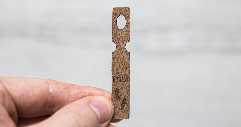 De vorm van het leren label, gaatjes en uitsnijdingen zijn met de laser uitgesneden, motieven en teksten zijn gegraveerd. Door de hitte ontstaan er lichte vlamsporen, die je labels een rustieke touch geven. Wil je je labels wassen? Als alternatief voor natuurlijk leer adviseren wij labels van kunstleer of FloraPap.